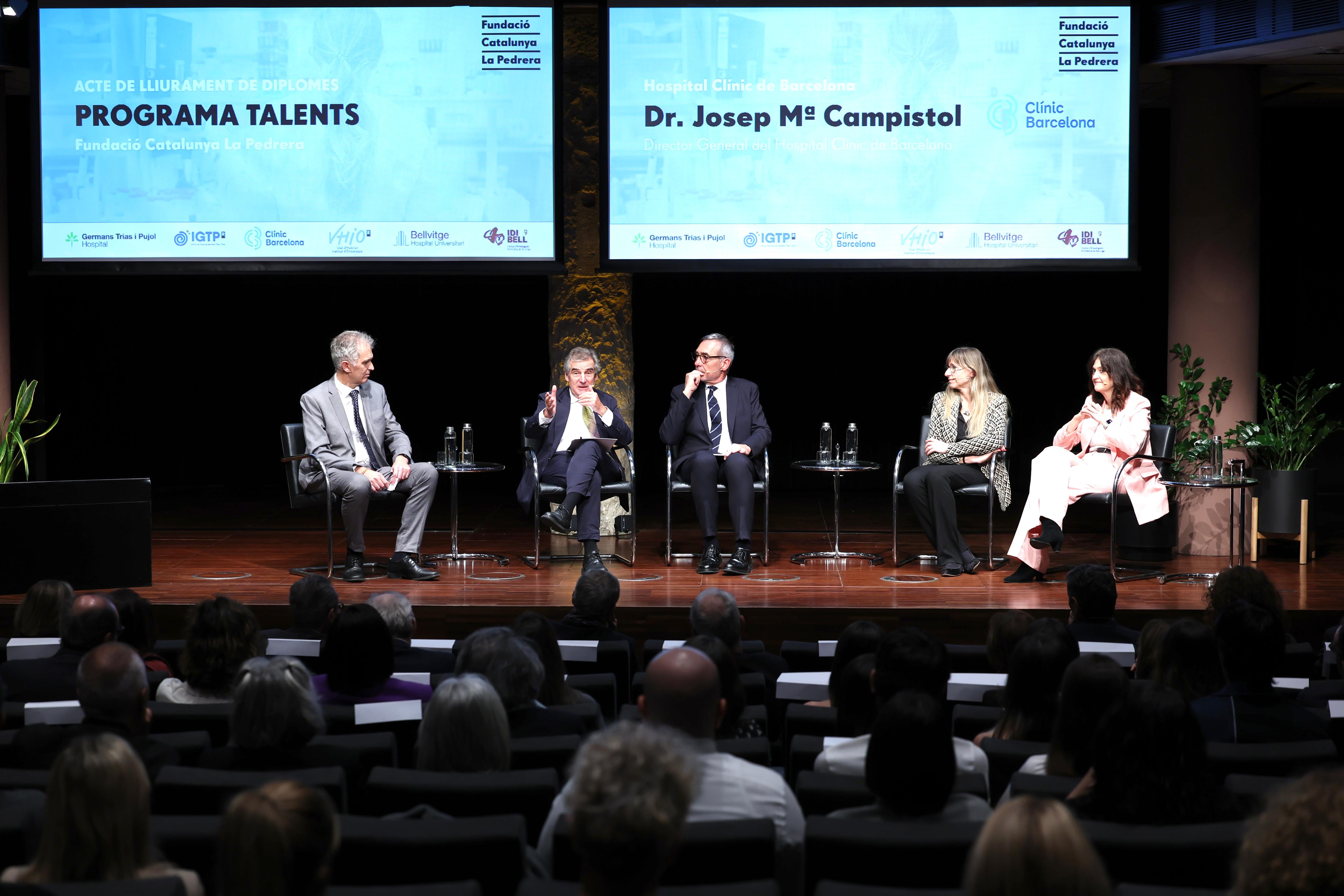 Ayer, La Pedrera acogió el acto de entrega de los Ajuts Talents correspondientes a las ediciones 2024 y 2025, con la presencia de la Hble. Sra. Olga Pané, consejera de Salud; el Sr. Germán Ramón-Cortés , presidente de la Fundación Catalunya La Pedrera; y Sra. Marta Lacambra, directora general de la Fundación. También participaron representantes de los hospitales colaboradores: Sra. Silvia Cordomí, gerencia del Hospital de Bellvitge; el Dr. Josep Maria Campistol , director general del Hospital Clínic Barcelona; el Dr. Jordi Ara, director de Investigación Clínica del Hospital Germans Trias i Pujol; y la Dra. Elena Élez, oncóloga médica e investigadora clínica del Vall d'Hebron Instituto de Oncología (VHIO). Durante la presentación , Olga Pané , Consejera de Salud subrayó: "Catalunya es referente en investigación biomédica gracias a iniciativas como esta. La colaboración entre instituciones es clave para avanzar en la medicina y mejorar la calidad de vida de la ciudadanía."